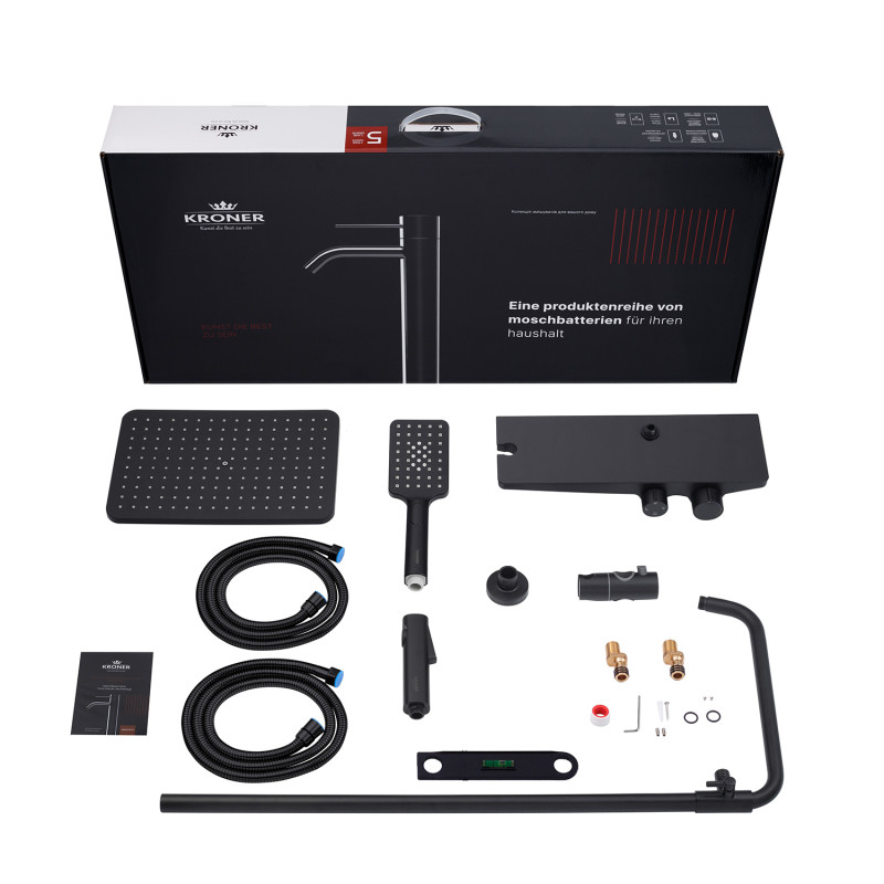 Душевая система Kroner KRP Armada – SCH066 – это сочетание функциональности, стиля и удобства. Выполненная в элегантном черном цвете с матовой поверхностью она станет не только функциональным элементом вашей ванной комнаты, но и ее стильным акцентом. Сочетание прочной латуни и высококачественного ABS-пластика обеспечивает долговечность и надежность, а универсальный настенный способ монтажа позволяет легко установить систему в любом пространстве.