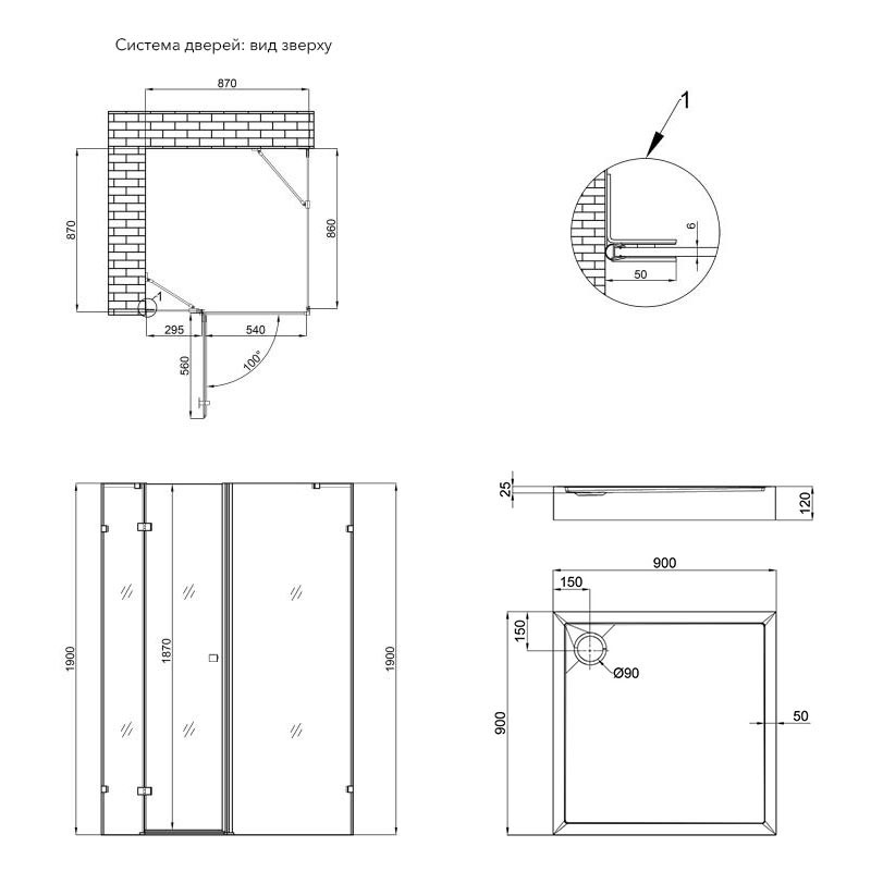 Qtap CAPRICORN CRM1099SC6 Душевая кабина квадратная 90х90 см, стекло 6мм Clear, CalcLess, распашная, без поддона