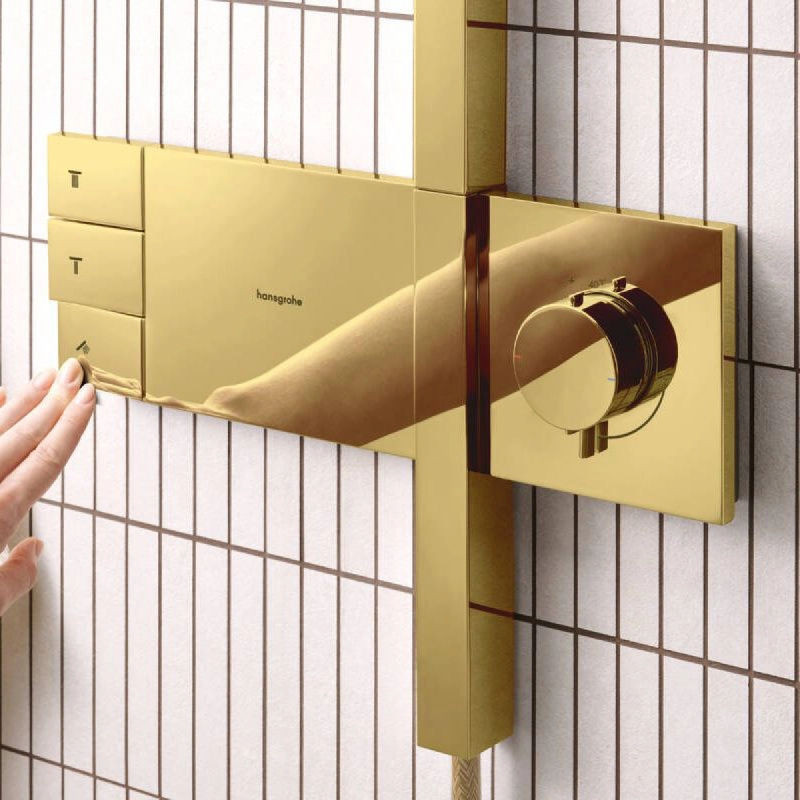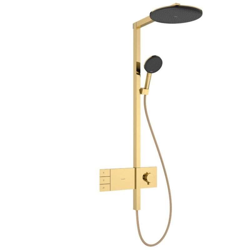 Душевая система hansgrohe Raindance Alive S 300 2jet с ShowerSelect Comfort, 24595990 золото — воплощение истинной роскоши и инновационных технологий для вашей ванной комнаты. Эта модель гармонично сочетает в себе элегантный дизайн, выдающуюся функциональность и долговечность, что делает её идеальным выбором для ценителей комфорта и стиля. Главной особенностью системы является верхний душ Raindance Alive S 300 диаметром 300 мм с двумя режимами струи (Rain и RainStream), что позволяет адаптировать водные процедуры под индивидуальные предпочтения. Благодаря технологии AirPower капли воды становятся объемными и мягкими, создавая ощущение природного дождя, а технология QuickClean обеспечивает лёгкую очистку форсунок от известкового налёта — просто проведите пальцем по соплам, и душ снова будет как новый. Современный термостат ShowerSelect Comfort с сенсорными кнопками обеспечивает простое и интуитивное управление всеми функциями душа. Точное поддержание температуры воды гарантирует абсолютную безопасность и комфорт при каждом использовании. Элегантное покрытие в цвете «золото» придаёт ванной особый шарм, подчёркивая статус владельца и утончённый вкус. Hansgrohe — это немецкое качество, проверенное временем. Душевая система изготовлена из высокопрочных материалов, устойчивых к коррозии и износу, что гарантирует долгий срок службы. Монтаж и обслуживание не вызывают сложностей благодаря продуманной конструкции и комплекту необходимых компонентов. Подарите себе наслаждение каждым душем! Заказывайте душевую систему hansgrohe Raindance Alive S 300 2jet с ShowerSelect Comfort (артикул 24595990) онлайн на нашем сайте с быстрой доставкой по всей Украине. Официальная гарантия 5 лет — ваша уверенность в правильном выборе!