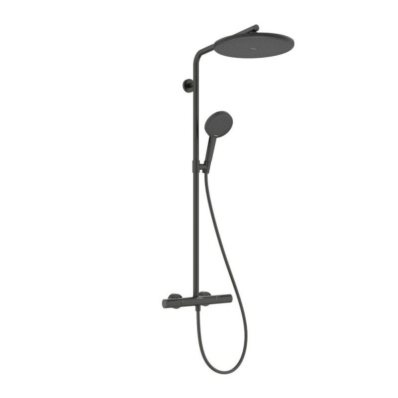 Душевая система hansgrohe Raindance Alive S Puro 300 1jet 24592340 с термостатом Ecostat Element, черный матовый хром – это идеальное решение для стильной и современной ванной комнаты. Эта модель сочетает в себе инновационные технологии, функциональность и элегантный дизайн, который подчеркнёт индивидуальность вашего интерьера. Главной особенностью душевой системы является большой верхний душ диаметром 300 мм, который обеспечивает равномерное и мягкое распределение воды, создавая эффект «тропического дождя». С функцией 1jet вы получите наслаждение от приятного, расслабляющего потока, который подарит комфорт после напряжённого дня. Черное матовое покрытие в сочетании с хромированными элементами выглядит роскошно и современно, устойчиво к царапинам и защищено от коррозии. Встроенный термостат Ecostat Element обеспечивает точную регулировку температуры воды и защищает от перепадов давления, гарантируя безопасность и комфорт для всей семьи. Благодаря технологии hansgrohe душ экономит воду, не снижая качества струи, что делает его экологичным и экономичным выбором. Монтаж системы максимально прост, а универсальная конструкция подходит для большинства современных ванных комнат. Производитель использует только высококачественные материалы, что гарантирует долговечность и надежность всей конструкции. Покупайте душевую систему hansgrohe Raindance Alive S Puro 300 1jet 24592340 с термостатом Ecostat Element в нашем интернет-магазине по выгодной цене. Мы обеспечим быструю доставку по всей Украине и официальную гарантию 5 лет. Заказывайте онлайн — превратите ваш душ в ежедневный источник удовольствия и уюта!