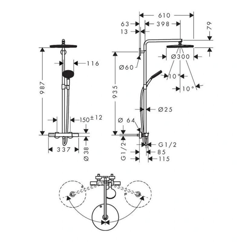 Душевая система hansgrohe Raindance Alive S Puro состоит из:
