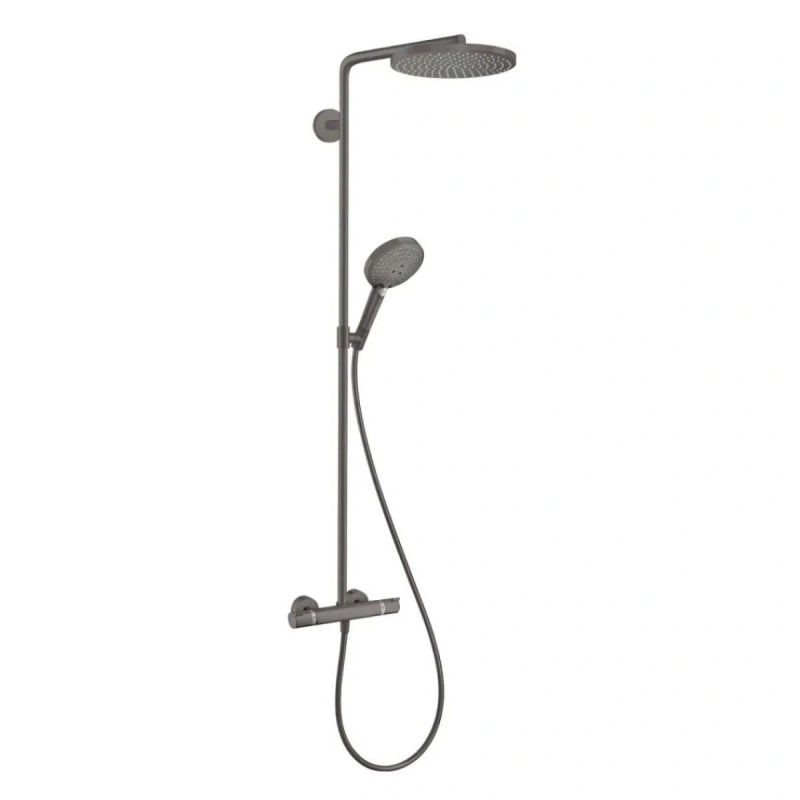 Душевая система hansgrohe Raindance S 240 1jet PowderRain EcoSmart+ с термостатом, 28823340, черный матовый хром — это воплощение инновационного немецкого качества и современного стиля в вашей ванной комнате. Эта модель от признанного бренда hansgrohe создана для того, чтобы дарить максимум удовольствия от водных процедур, сочетая эстетику, функциональность и заботу об экологии. Большая верхняя лейка диаметром 240 мм обеспечивает мягкое, равномерное распределение воды по технологии PowderRain. Мелкодисперсные струи создают ощущение легкого дождя, бережно окутывая тело и даря расслабляющий комфорт. Экономичный расход воды гарантирован инновационной системой EcoSmart+, которая снижает потребление до 9 л/мин, сохраняя эффективность и мощность потока. Интегрированный термостат hansgrohe обеспечивает стабильную температуру воды и защищает от перепадов давления, что особенно важно для семей с детьми. Удобное переключение режимов и эргономичные элементы управления делают использование душевой системы простым и интуитивным. Покрытие в стиле черный матовый хром придает системе элегантный вид и устойчиво к царапинам, что обеспечивает безупречный внешний вид на долгие годы. Монтаж возможен к стене, что позволяет сэкономить место и идеально вписать душевую систему в любой интерьер. Материалы высокого качества гарантируют долговечность и надежную работу, а продуманный дизайн — легкость в уходе. Покупайте душевую систему hansgrohe Raindance S 240 1jet PowderRain EcoSmart+ 28823340 онлайн на нашем сайте! Мы обеспечим быструю доставку по всей Украине и предоставим официальную гарантию 5 лет. Сделайте вашу ванную комнату оазисом комфорта и стиля вместе с hansgrohe!