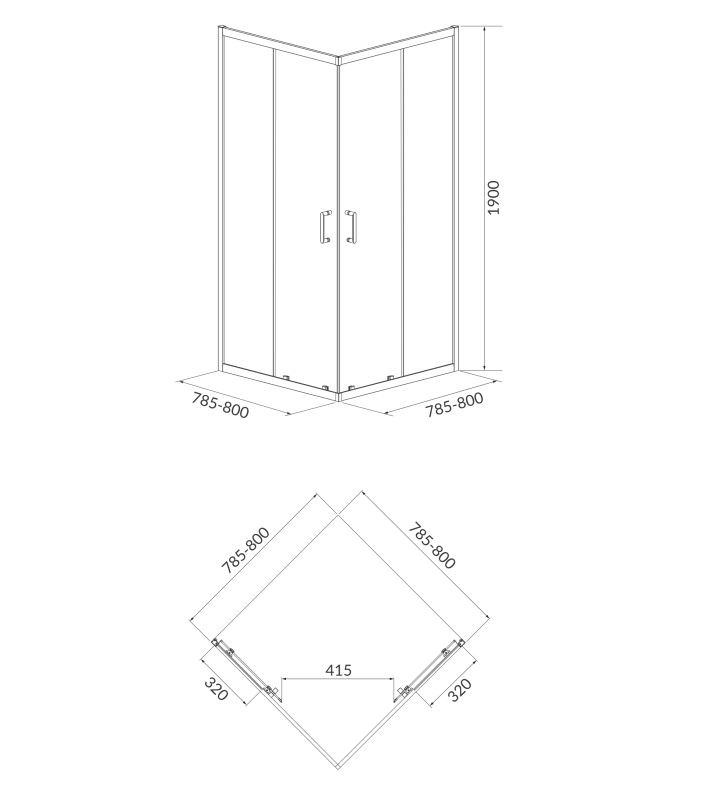 - стекло: закаленное прозрачное, толщина двери – 5 мм, неподвижных стенок – 4 мм