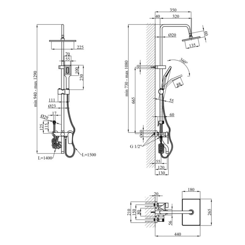 Регулируемая душевая штанга: Возможность регулировки высоты штанги позволяет настраивать систему под разные потребности членов вашей семьи.