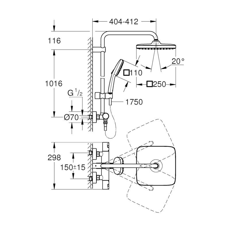 Описание Душевая система Grohe QuickFix Vitalio Comfort System 250 Cube 266962431