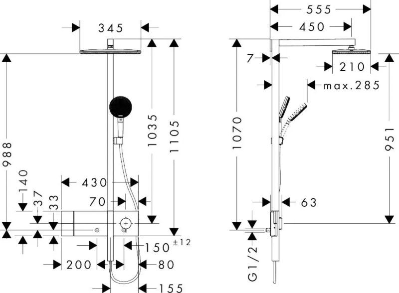 Душевая система hansgrohe Raindance Alive Q 210/340 1jet состоит из:
