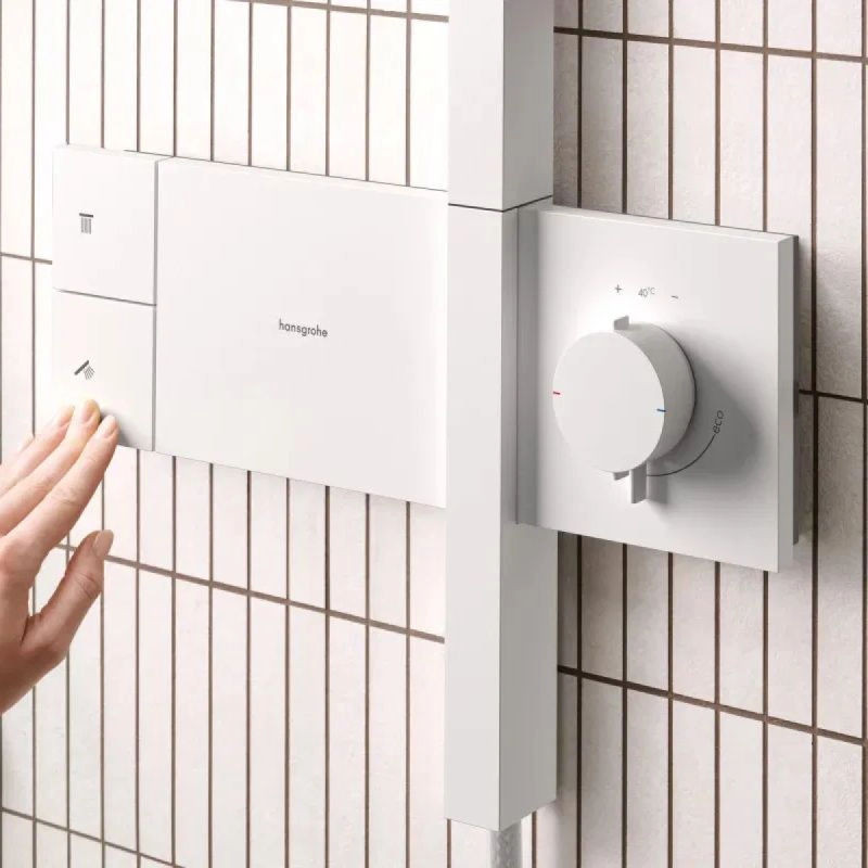 Душевая система hansgrohe Raindance Alive Q 210/340 1jet с ShowerSelect Comfort, 24580700, белый матовый – это идеальное сочетание инновационных технологий, стильного дизайна и безупречного немецкого качества. Эта модель станет изысканным акцентом в современной ванной комнате, подарив непревзойденный комфорт и удовольствие от каждого принятия душа. Главная особенность системы — верхний душ Raindance Alive Q 340 мм с технологией PowderRain. Мелкодисперсные капли мягко окутывают тело, обеспечивая ощущение расслабляющего СПА-ухода. Благодаря функции 1jet вы получаете равномерный и мощный поток воды, который эффективно смывает усталость после насыщенного дня. Ручной душ Raindance Select S 120 также оснащён технологией AirPower, обогащающей воду воздухом для максимально приятных ощущений. Управление душевой системой осуществляется с помощью интуитивной панели ShowerSelect Comfort. Сенсорные кнопки позволяют мгновенно переключаться между режимами, а термостат поддерживает стабильную температуру воды для полной безопасности и комфорта. Встроенный держатель и шланг Isiflex длиной 1,60 м обеспечивают максимальную свободу движений. Белый матовый цвет корпуса подчёркивает современный стиль вашей ванной комнаты и отлично сочетается с другими элементами интерьера. Материалы высочайшего качества гарантируют долгий срок службы и легкость ухода за поверхностями. Покупайте душевую систему hansgrohe Raindance Alive Q 210/340 1jet с ShowerSelect Comfort (артикул 24580700) онлайн в нашем интернет-магазине с доставкой по всей Украине. Мы гарантируем официальное качество и предоставляем 5 лет гарантии на изделие. Подарите себе истинное наслаждение от водных процедур — закажите сейчас и ощутите разницу hansgrohe!