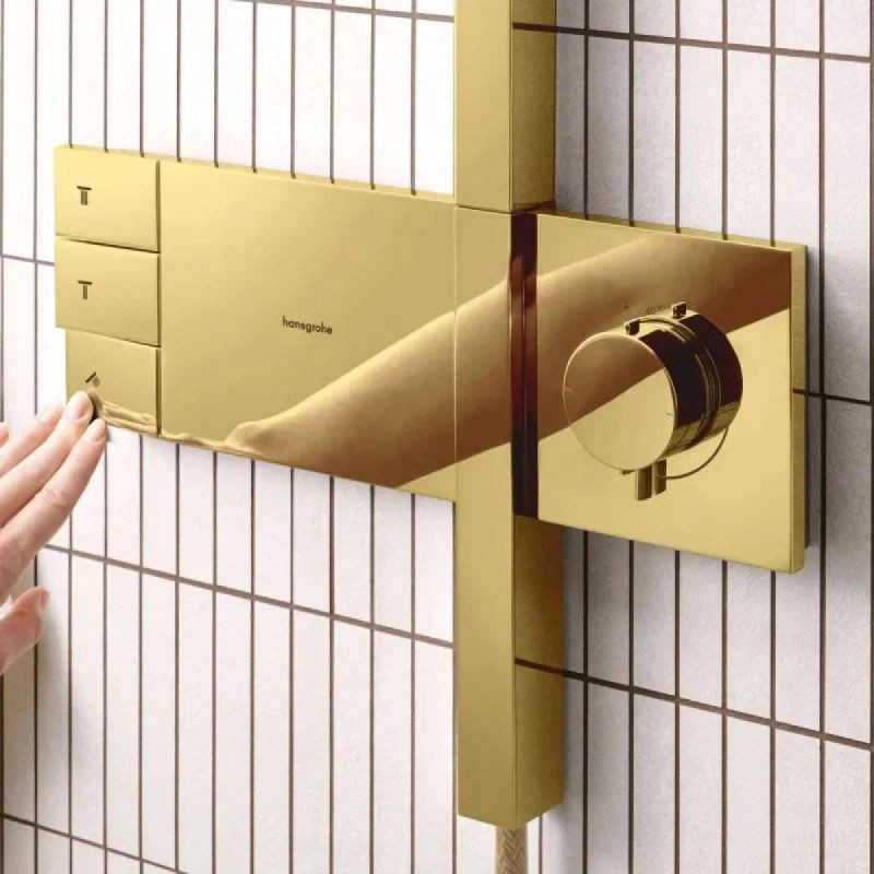 Душевая система hansgrohe Raindance Alive Q 210/340 2jet EcoSmart с ShowerSelect Comfort, 24591990 золото — воплощение роскоши, инноваций и немецкого качества для вашей ванной комнаты. Эксклюзивный золотой цвет придаёт интерьеру особый шарм и чувство премиальности, подчёркивая ваш безупречный вкус. Эта модель объединяет современный дизайн с передовыми технологиями, чтобы сделать каждое принятие душа по-настоящему незабываемым. Большая верхняя лейка Raindance Alive Q 340 мм обеспечивает равномерное распределение воды, создавая эффект дождя и мягко окутывая тело приятными потоками. Благодаря технологии 2jet вы можете легко переключаться между двумя режимами струй: насыщенным Rain и расслабляющим RainAir, подстраивая душ под своё настроение и потребности. Экономия воды достигается с помощью инновационной системы EcoSmart, которая снижает расход до 9 л/мин без ущерба для комфорта. Интуитивная панель управления ShowerSelect Comfort позволяет одним нажатием выбирать нужный режим и температуру воды. Превосходная эргономика и плавность работы кнопок делают использование системы максимально удобным для всей семьи. Высококачественные материалы и хромированное покрытие защищают изделие от коррозии и гарантируют долговечность. Душевая система hansgrohe Raindance Alive Q 210/340 2jet EcoSmart с ShowerSelect Comfort, 24591990 золото — это идеальный выбор для тех, кто ценит стиль, комфорт и экономичность. Закажите товар онлайн на нашем сайте с доставкой по всей Украине и получите официальную гарантию 5 лет! Не упустите шанс сделать вашу ванную комнату местом истинного наслаждения!