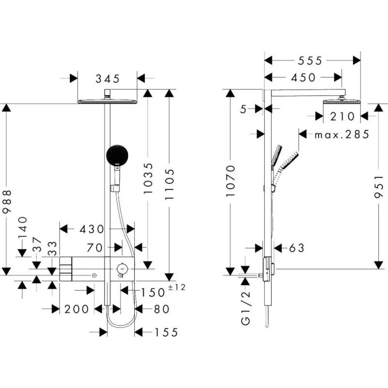 Душевая система hansgrohe Raindance Alive Q 210/340 2jet состоит из: