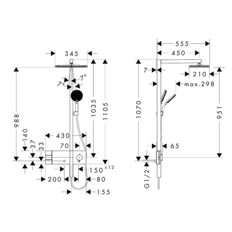 Душевая система hansgrohe Raindance Alive Q 210/340 2jet состоит из: