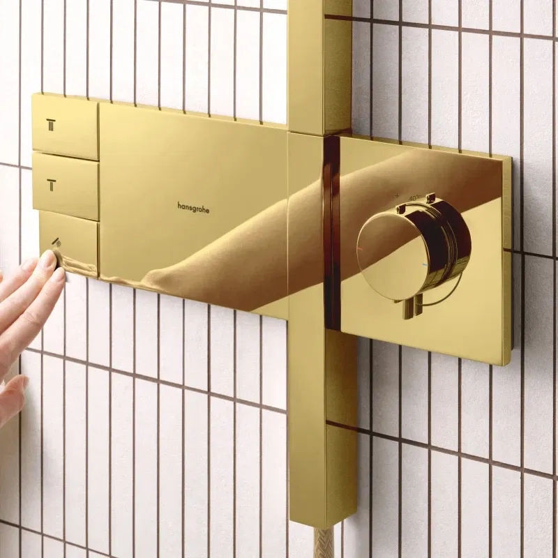 Душевая система hansgrohe Raindance Alive Q 210/340 2jet с ShowerSelect Comfort, 24590990 золото — воплощение роскоши, инноваций и немецкого качества в вашей ванной комнате. Эта уникальная душевая система от мирового лидера сантехники hansgrohe создана для тех, кто ценит комфорт, стиль и современные технологии водных процедур. Главная особенность модели — изысканное золото покрытия, которое придаёт ванной комнате особый шарм и утонченность, подчёркивая статус и безупречный вкус владельца. Благодаря инновационной технологии Raindance Alive Q, вы можете выбирать между двумя типами струй (2jet): расслабляющим дождевым потоком Rain и тонизирующим Intense PowderRain, который мягко окутывает тело тысячами мельчайших капель, создавая эффект спа прямо у вас дома. Термостатический смеситель ShowerSelect Comfort обеспечивает точный контроль температуры воды и простое управление функциями душа с помощью сенсорных кнопок. Это гарантирует максимальную безопасность и удобство даже для детей или пожилых людей. Верхний душ размером 340x220 мм и ручной душ диаметром 120 мм обеспечивают равномерное распределение воды, превращая каждое принятие душа в настоящий ритуал наслаждения. Использование долговечных, устойчивых к известковым отложениям материалов, а также простота ухода за поверхностями — залог долгой службы и сохранения безупречного внешнего вида системы. Душевая система hansgrohe Raindance Alive Q 210/340 2jet с ShowerSelect Comfort, артикул 24590990, идеально впишется как в современные, так и в классические интерьеры ванных комнат. Покупайте оригинальную душевую систему hansgrohe онлайн в нашем магазине с доставкой по всей Украине! Мы гарантируем официальную 5-летнюю гарантию производителя, профессиональную консультацию и быструю обработку вашего заказа. Позвольте себе ежедневную роскошь и комфорт с hansgrohe!