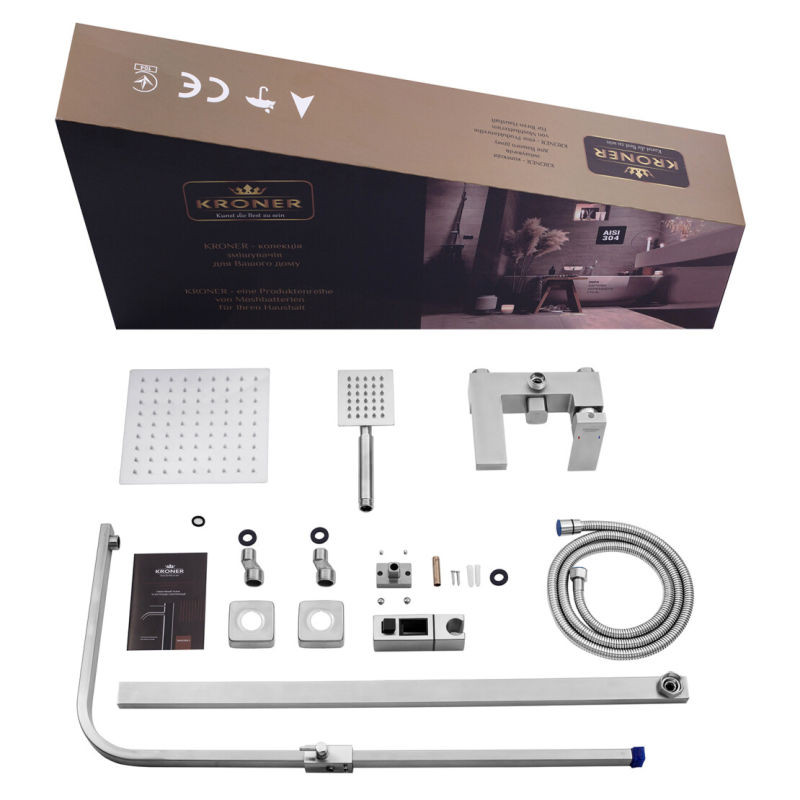 Душова система Kroner KRP Edelstahl Kubus - ESG064 – це поєднання елегантного дизайну та функціональності. Виконана у кольорі нікель, вона чудово впишеться в будь-який стиль ванної кімнати. Забезпечується два режими струменя. Використовуючи нержавіючу сталь як основний матеріал, система відрізняється довговічністю та стійкістю до корозії. Прямокутна форма лейки додає оригінальності та стильності. Поверхня системи має браширований ефект, що створює приємне відчуття як на дотик, так і на вигляд. Підніміть свій душевний комфорт на новий рівень з душовою системою Kroner KRP Edelstahl Kubus - ESG064