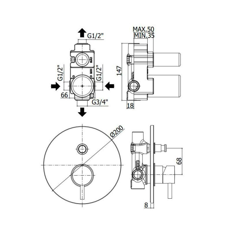 Смеситель для ванны/душа встроенный Paffoni Light (LIG015BO)
