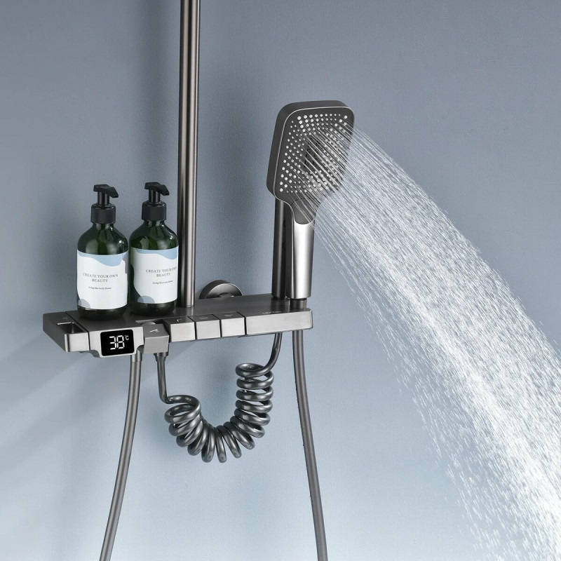4-в-1 функциональность: Эта душевая колонна сочетает в себе дождевой душ, ручной душ, распылитель и поток воды для различных потребностей и наслаждения водными процедурами.