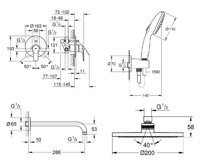 Душевой кронштейн Grohe Rainshower 286 мм (28576000):