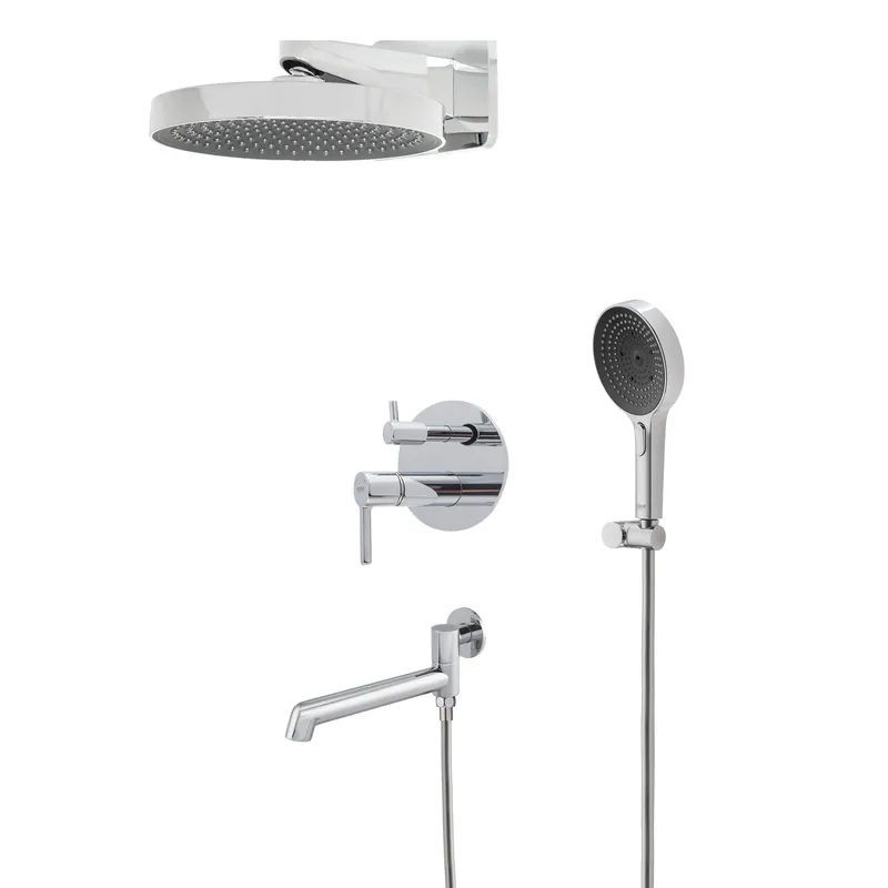 Корпус изготовлен из прочной латуни с хромированным покрытием, а за переключение режимов отвечает надёжный керамический картридж. Ручная лейка с диаметром 135 мм оснащена удобной кнопкой выбора одного из трёх режимов струи — от мягкого дождя до более мощного напора. Управление — однорычажное, а все элементы скрытого монтажа аккуратно интегрируются в стену, освобождая пространство и подчёркивая чистоту линий.
