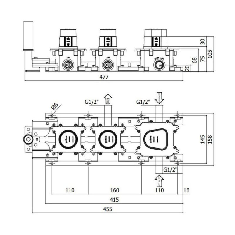 Скрытый набор для термостатического смесителя для душа/ванны (2 функции) Paffoni Modular box (MDBOX 000)