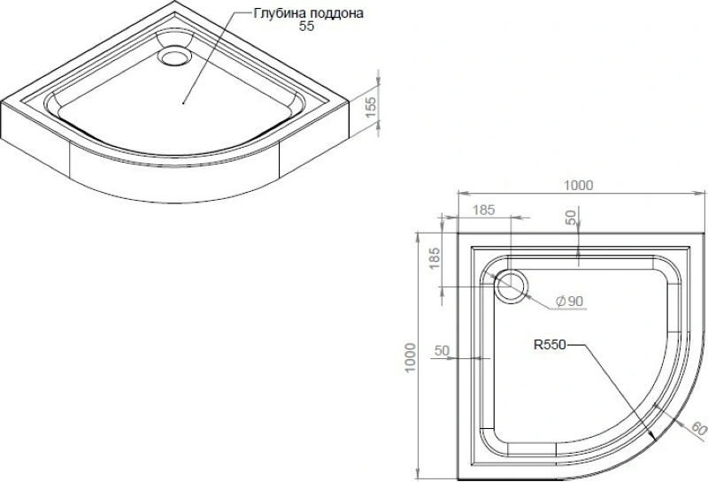 Этот полукруглый поддон акриловый размером 100x100x15.5 см идеально подходит для любой современной ванной комнаты.
