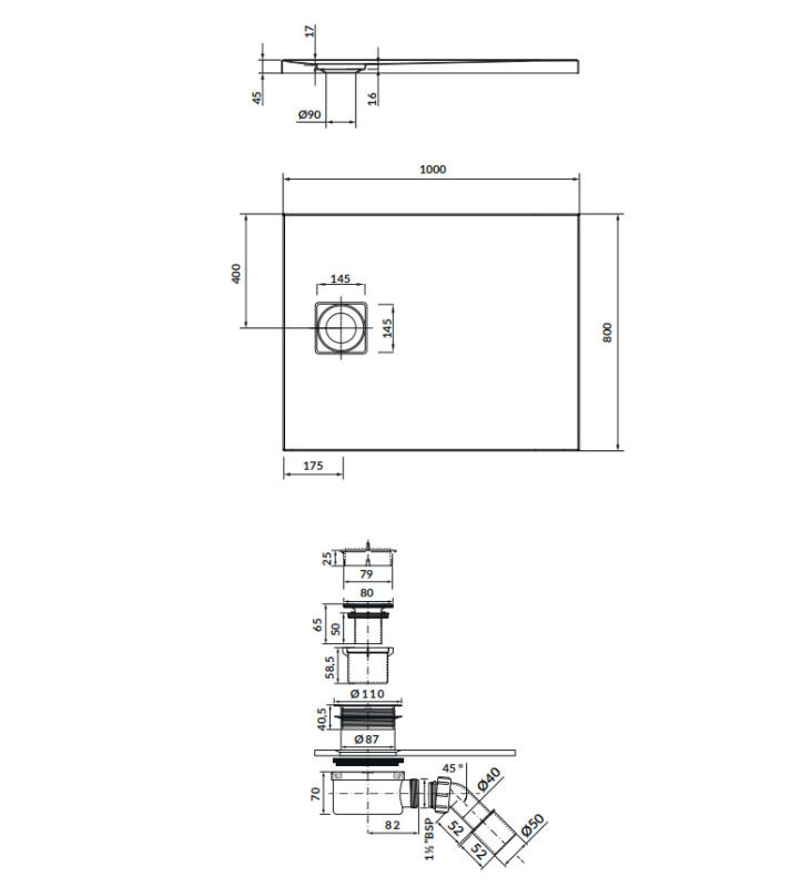 - высота поддона 4,5 см позволяет установить его непосредственно на пол или заподлицо с плиткой
