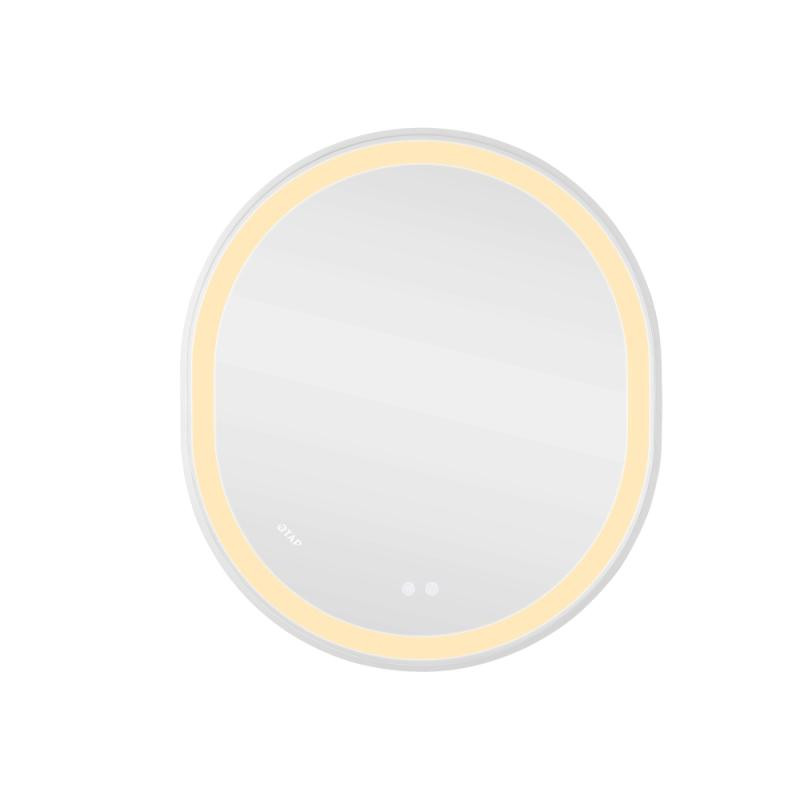 Зеркало настенное овальное с LED-подсветкой Qtap Gemini 800x700 White Reverse — это элегантное решение для ванной комнаты, оснащенное сенсорным управлением, функцией антизапотевания, диммером и регулировкой температуры цвета (3000-6500K), что обеспечивает комфорт и удобство использования.