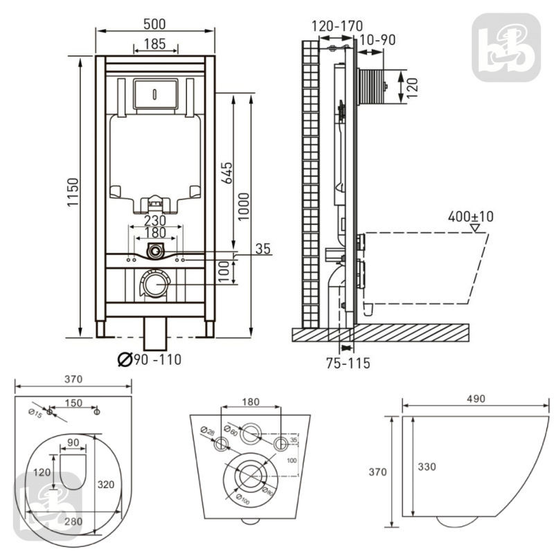 • Комплектация: Инсталляция, звукоизоляционная прокладка, унитаз, сиденье, клавиша
