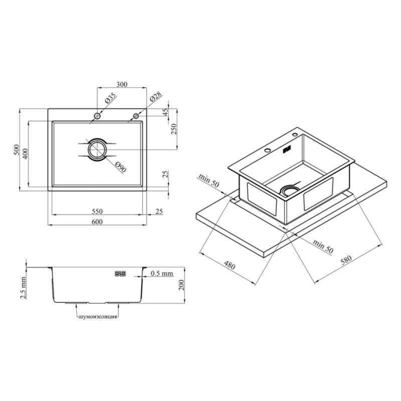 Кухонная мойка Kroner Derby KRP Brush-6050HM – это современное и функциональное решение для вашей кухни. Мойка имеет прямоугольную форму с размерами 600 мм в ширину и 500 мм в глубину, что делает ее удобной для разных кулинарных задач. Высота мойки составляет 215 мм. Она изготовлена из нержавеющей стали, что гарантирует ее прочность и длительность. Интегрированный способ монтажа этой мойки предлагает три варианта установки: на уровне столешницы, над столешницей (аналогично врезным мойкам) и под столешницей. Это дает возможность выбрать наилучшее расположение мойки в соответствии с вашими потребностями и дизайном кухни. Мойка имеет стильный стальной цвет и поверхность с эффектом "браш", что делает ее эстетически привлекательной. Она также оборудована переливом и сифоном для обеспечения удобства использования. В комплект входят сама мойка, сифон, слив-перелив и корзиновый вентиль, что делает процесс установки и использования мойки простым и удобным.
