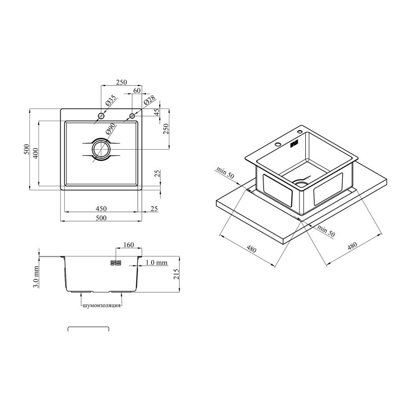Кухонная мойка Kroner Derby KRP PVD-5050HM – это стильное и функциональное решение для вашей кухни. Мойка имеет квадратную форму размерами 500 мм х 500 мм. Эта компактная форма делает ее отличным вариантом для кухонь разных размеров. Высота мойки составляет 215 мм. Она изготовлена из нержавеющей стали, что делает ее крепкой и долговечной. Мойка изготовлена в черном цвете и с поверхностью PVD, что придает ей элегантный вид. Эта мойка имеет встроенный метод монтажа, позволяющий встраивать ее гармонично в кухонный интерьер. Мойка оборудована переливом и сифоном, что делает ее функциональной и удобной в эксплуатации. В комплект мойки входят сама мойка, сифон, слив-перелив и корзиновый вентиль, что делает ее готовой к установке и использованию.