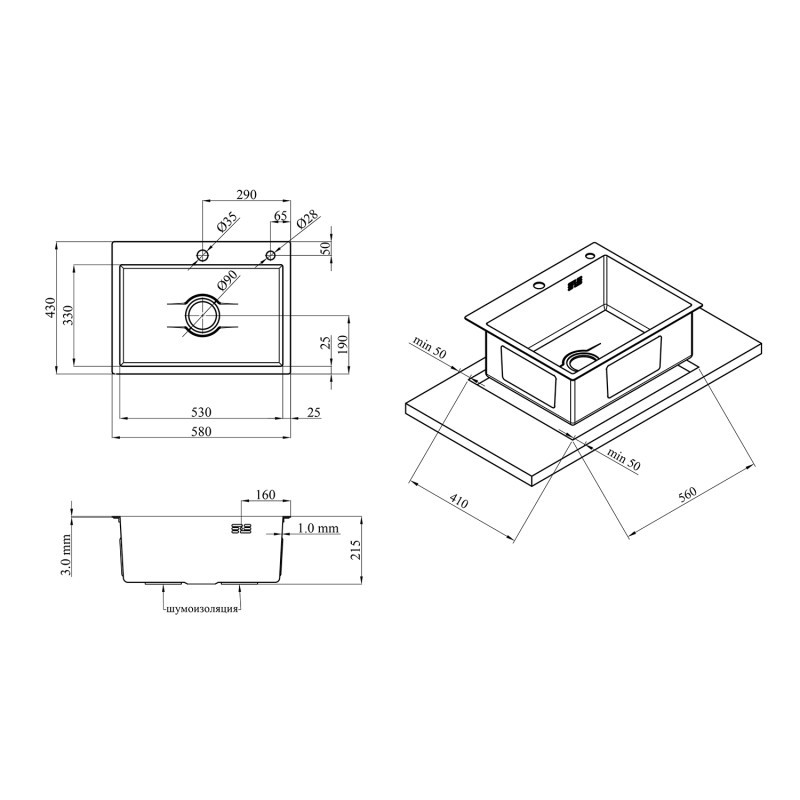 Кухонная мойка Kroner Derby KRP PVD-5843HM – это стильное и функциональное решение для вашей кухни. Имея прямоугольную форму с размерами 580 мм в ширину и 430 мм в глубину, эта мойка станет отличным дополнением к любой кухне. Она имеет высоту 215 мм и изготовлена из нержавеющей стали, что делает ее крепкой и долговечной. Эта мойка имеет интегрированный способ монтажа и предлагает три варианта установки: уровень со столешницей, над столешницей (подобно врезным моек) и под ней. Это дает вам возможность выбора оптимального расположения для вашей кухни. Стальной цвет мойки и поверхность PVD придают ей элегантный вид и делают ее современной. Мойка оборудована переливом и сифоном для удобного использования. В комплект входят самая мойка, сифон, слив-перелив и корзиновый вентиль, что делает установку и использование этой мойки легкими и удобными.