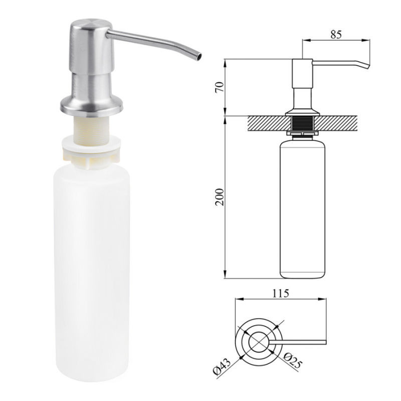 Дополнительные характеристики: Нержавеющая сталь SUS201. Имеется отверстие для дозатора моющего средства. Заправка мылом или моющим средством производится без откручивания емкости.