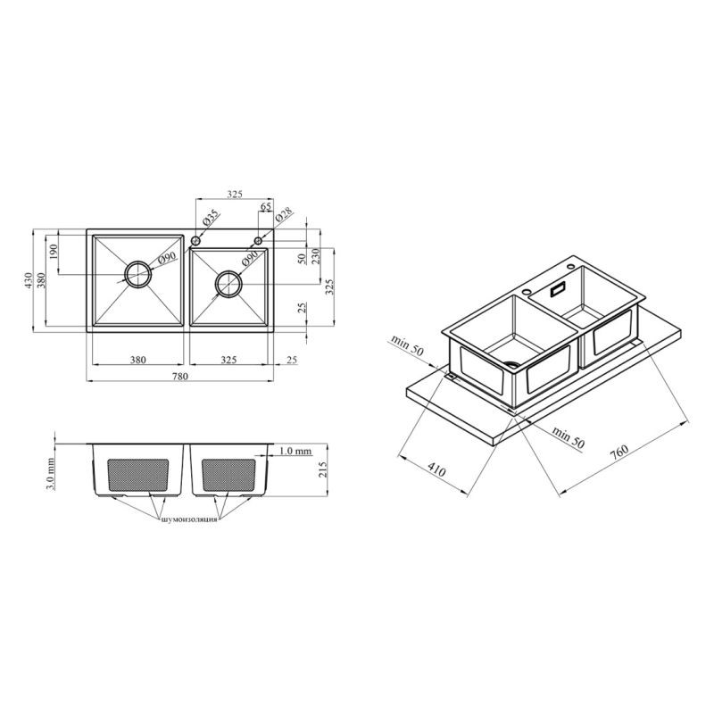 Тип изделия Кухонная мойка Дозатор Смеситель