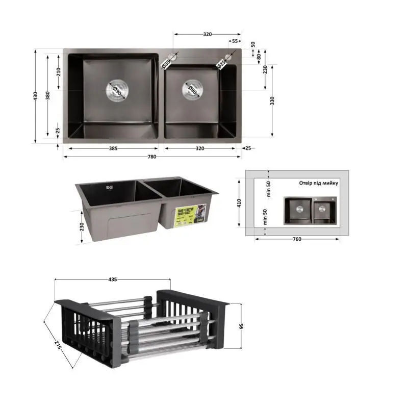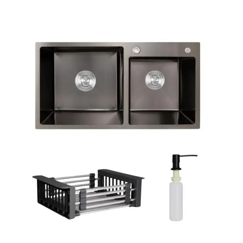 Комплект Lidz Handmade H7843 (BlackPVD) с двумя чашами, черным покрытием BlackPVD, дозатором и корзиной Lidz K01B — это практичное решение для самых взыскательных пользователей.