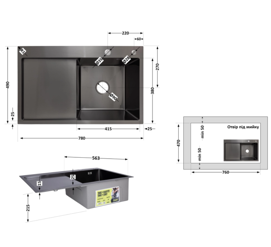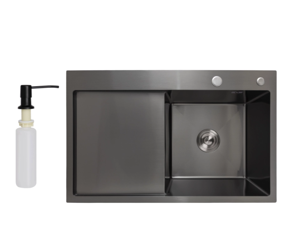 Описание Кухонная мойка Lidz Handmade H7849BL крыло слева (LDH6545BPVD43623) Brushed Black PVD 3,0/1,0 мм