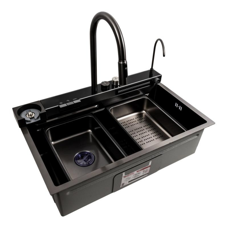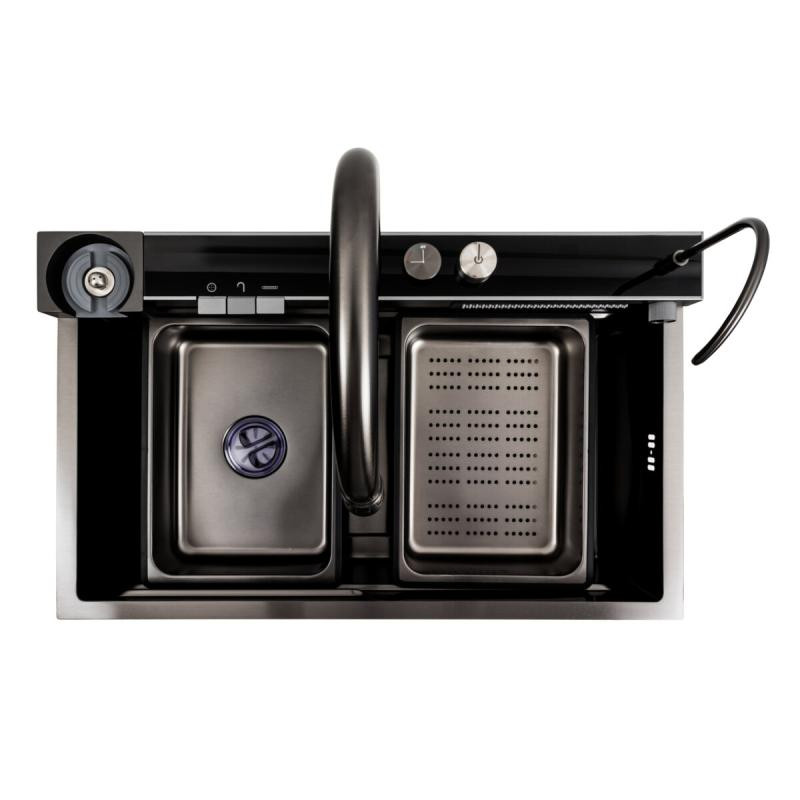 Кухонная мойка 75*46D PVD черная Platinum Handmade "ВОДОСПАД" - невероятно популярная кухонная мойка, настоящее открытие! Ее функциональность и комплектация со смесителем делают ее незаменимым аксессуаром для любой кухни.