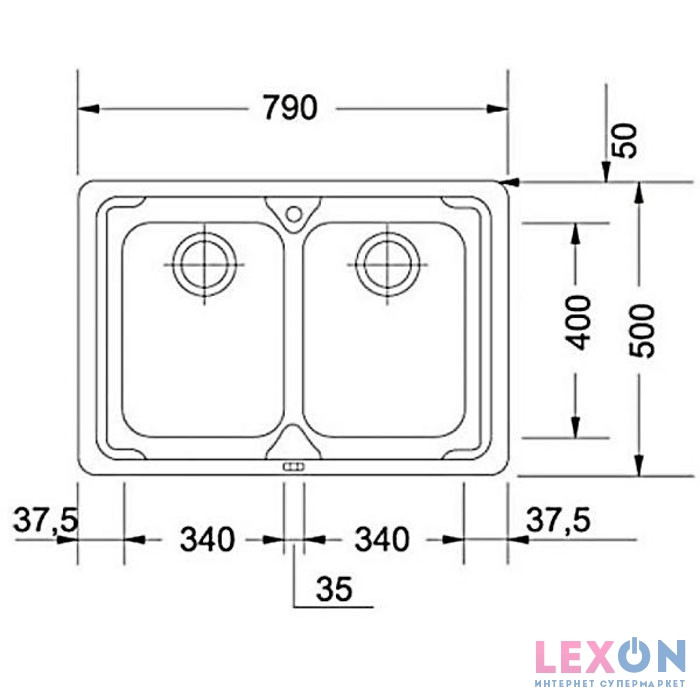 • Размеры мойки (ШхГ): 790 х 500 мм