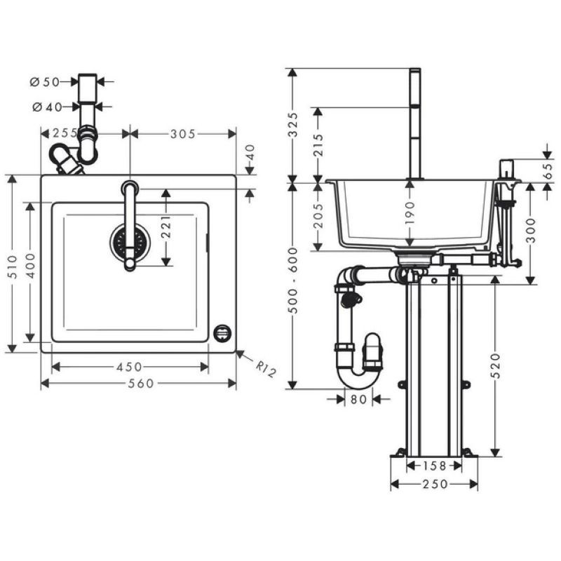 Описание Кухонная мойка Hansgrohe COMBI C51-F450-06 Сombi 560x510 Select со смесителем (43217000)