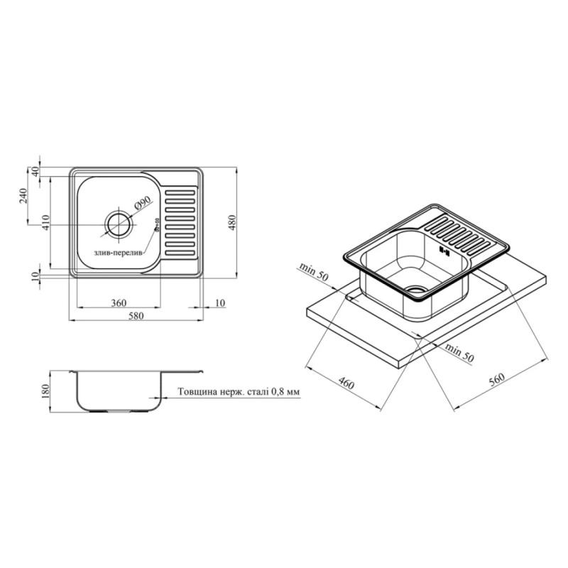 Прямоугольная мойка с крылом Kroner KRP Dekor-5848 CV022776 размером 58х48 см изготовлена из нержавеющей стали толщиной 0,8 мм. Мойка врезная и устанавливается на столешницу. Мойка имеет крыло, которое можно размещать слева или справа, так как мойка оборачиваемая. Прекрасное рельефное покрытие не впитывает запахи, устойчиво к механическим повреждениям и легко моется. Благодаря глубине в 18 см и просторным размерам чаши вы легко сможете мыть в ней крупную посуду или набирать воду в высокие кастрюли.