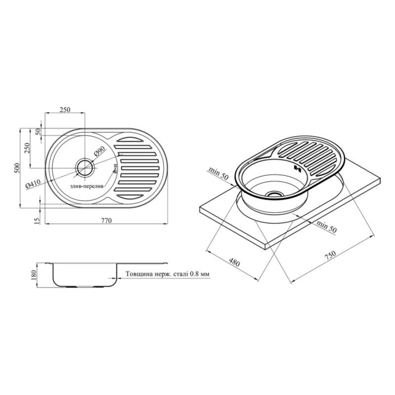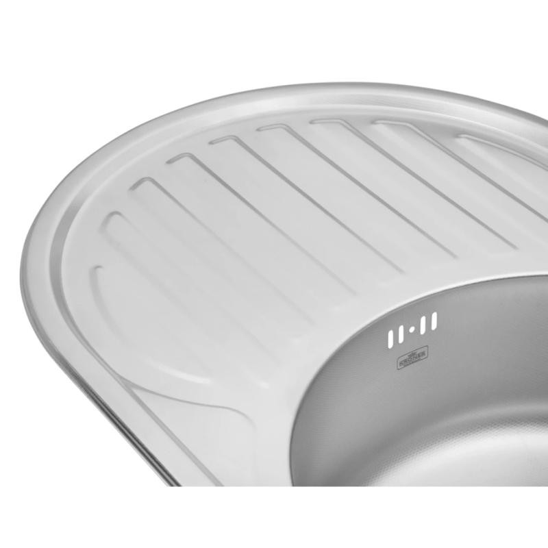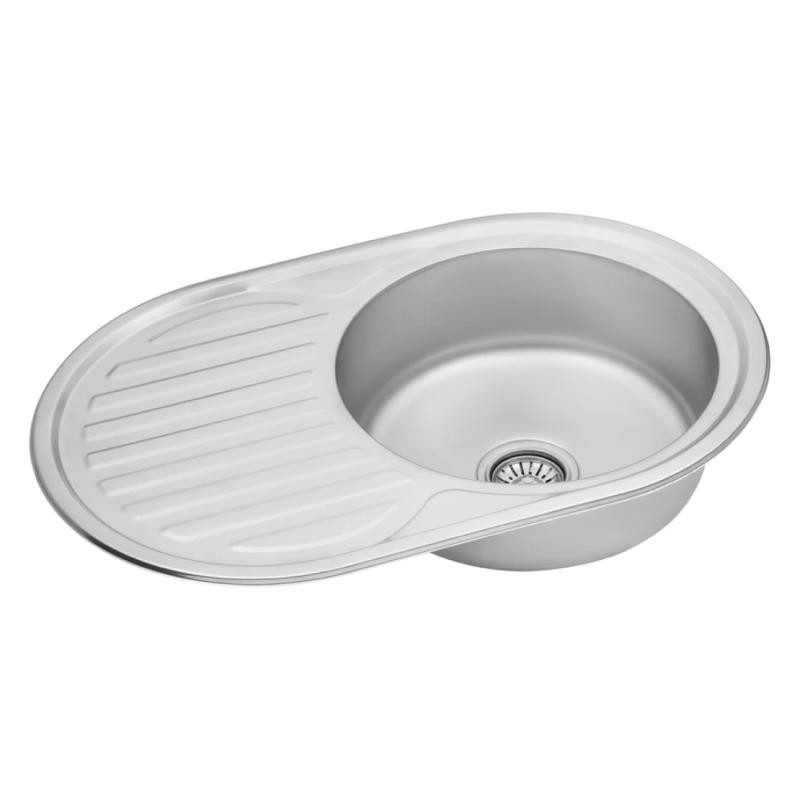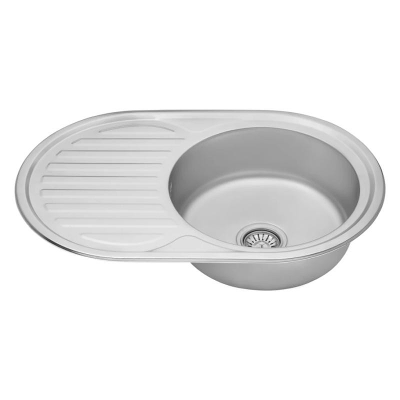 Овальная мойка с крылом Kroner KRP Dekor-7750 CV022784 размером 77х50 см изготовлена из нержавеющей стали толщиной 0,8 мм. Мойка врезная и устанавливается на столешницу. Мойка имеет крыло, которое можно размещать слева или справа, так как мойка оборачиваемая. Прекрасное рельефное покрытие не впитывает запахи, устойчиво к механическим повреждениям и легко моется. Благодаря глубине в 16 см и просторным размерам чаши вы легко сможете мыть в ней крупную посуду или набирать воду в высокие кастрюли.