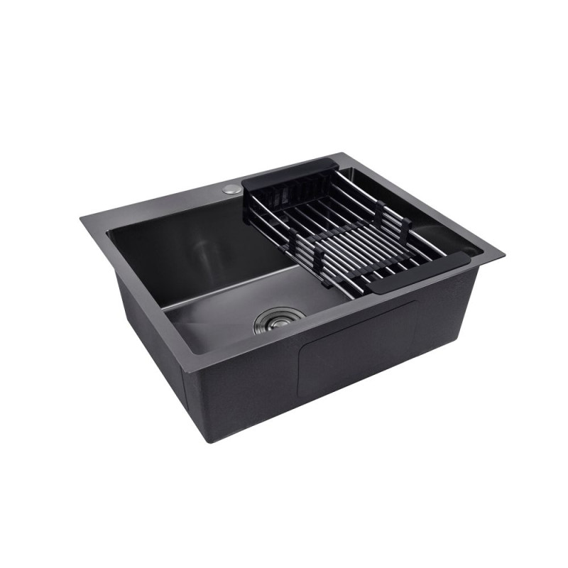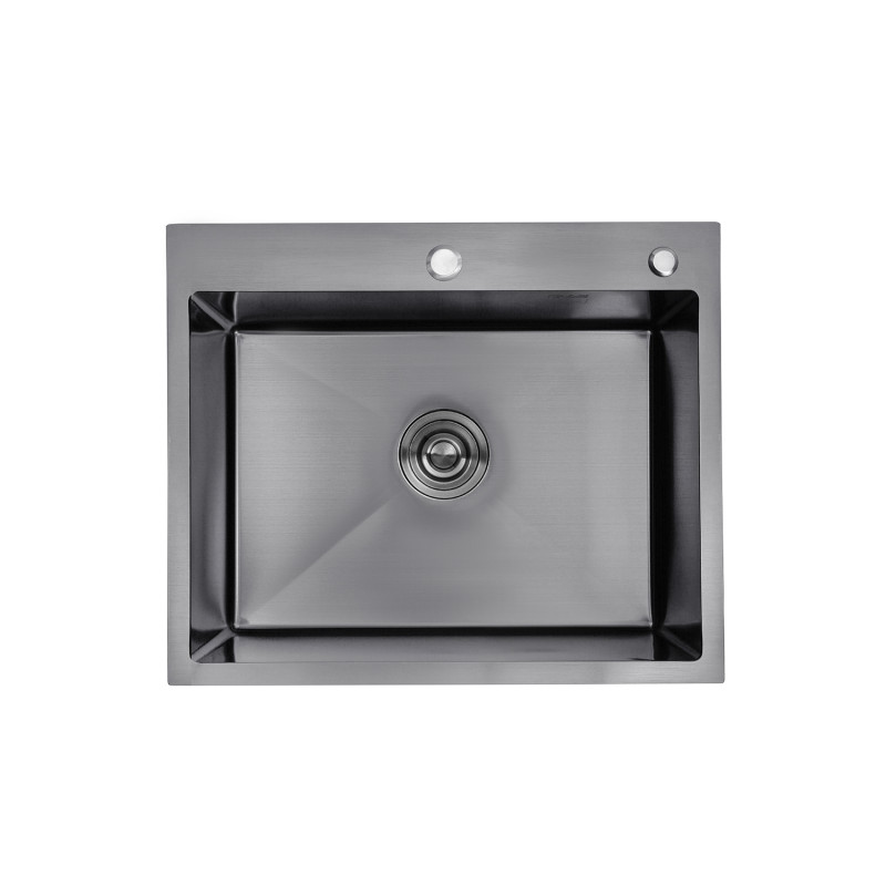 Чёрная мойка из нержавеющей стали Kroner Handmade KRP PVD Schwarze-6050HM CV025260 имеет прямоугольную форму с размерами 60х50 см и матовую поверхность. Мойку можно устанавливать несколькими способами: на столешницу, в один уровень со столешницей и под столешницу. Дно мойки имеет углубление к сливу в виде граней, что обеспечивает полное стекание и меньшее образование пятен от высохшей воды. На внешней стороне мойка имеет специальное звукоизолирующее покрытие, которое минимизирует шумы от струи воды. Мойка укомплектована сифоном с корзинчатым сливом и донным клапаном оригинальной формы.