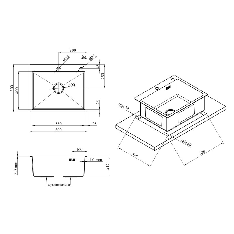 Форма мойки: | прямоугольная |