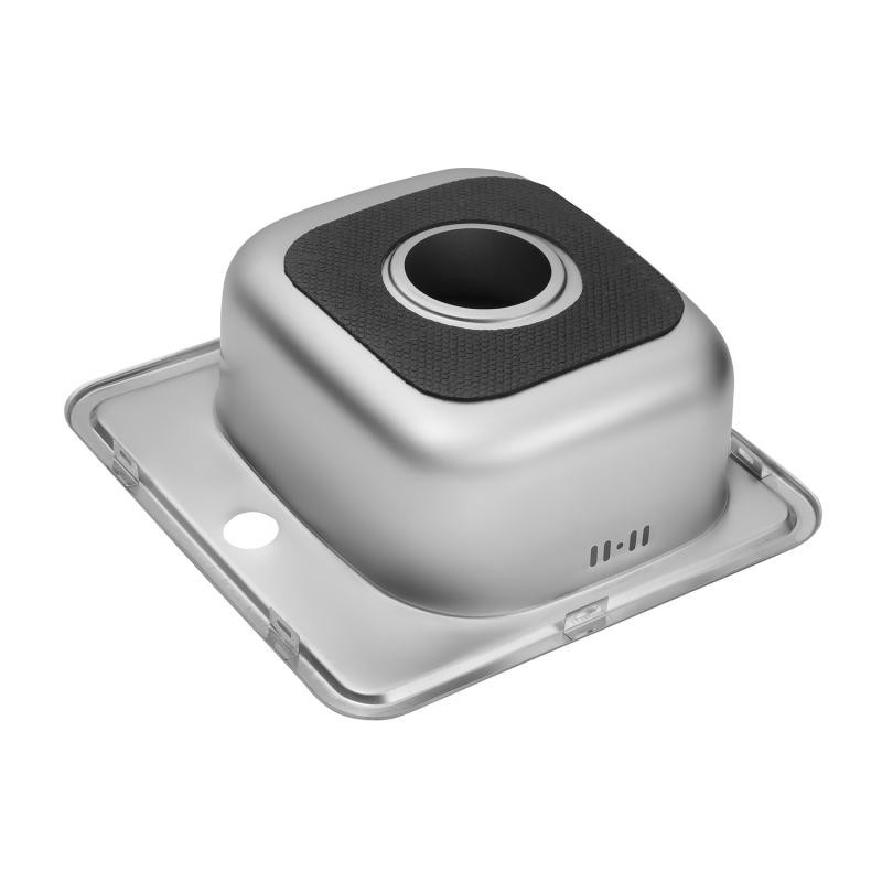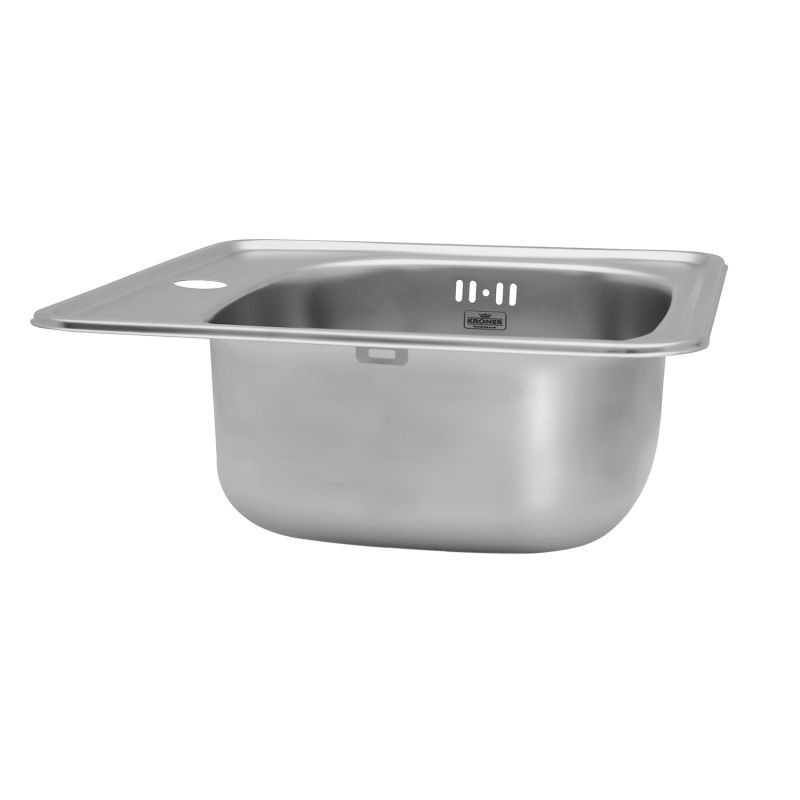Квадратная мойка Kroner KRP Satin-3838 CV022756 размером 38х38 см изготовлена из нержавеющей стали толщиной 0,6 мм. Сатиновое покрытие является одним из самых лучших для использования на кухнях: гладкая поверхность не впитывает загрязнениями легко моется, а матовость делает невидимыми засохшие капли воды. Таким образом мойка всегда выглядит чистой и ухоженной с наименьшими усилиями со стороны хозяйки. Мойка врезная и устанавливается на столешницу. На борту мойки предусмотрено одно отверстие для смесителя. Благодаря глубине в 16 см и просторным размерам чаши вы легко сможете мыть в ней крупную посуду или набирать воду в высокие кастрюли.