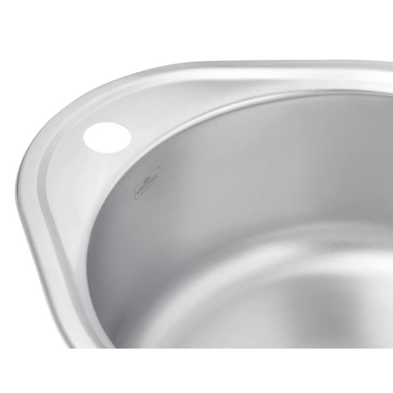 Мойка каплевидной формы Kroner KRP Satin-4843 CV022757 размером 48х43 см изготовлена из нержавеющей стали толщиной 0,8 мм. Сатиновое покрытие является одним из самых лучших для использования на кухнях: гладкая поверхность не впитывает загрязнениями легко моется, а матовость делает невидимыми засохшие капли воды. Таким образом мойка всегда выглядит чистой и ухоженной с наименьшими усилиями со стороны хозяйки. Мойка врезная и устанавливается на столешницу. На борту мойки предусмотрено одно отверстие для смесителя. Благодаря глубине в 18 см и просторным размерам чаши вы легко сможете мыть в ней крупную посуду или набирать воду в высокие кастрюли.