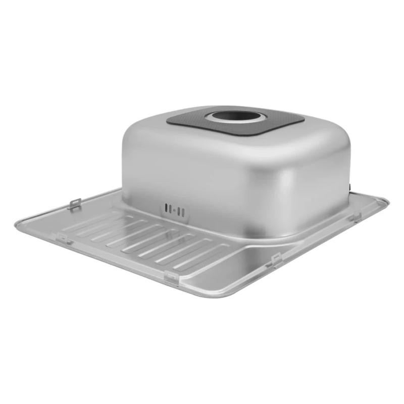 размером 58х48 см изготовлена из нержавеющей стали толщиной 0,8 мм. Мойка врезная и устанавливается на столешницу. У мойки есть крыло, которое можно разместить слева или справа, так как мойка оборачиваемая. Благодаря глубине в 18 см и просторным размерам чаши вы легко сможете мыть в ней крупную посуду или набирать воду в высокие кастрюли. Сатиновое покрытие является одним из самых лучших для использования на кухнях: гладкая поверхность не впитывает загрязнениями легко моется, а матовость делает невидимыми засохшие капли воды. Таким образом мойка всегда выглядит чистой и ухоженной с наименьшими усилиями со стороны хозяйки.