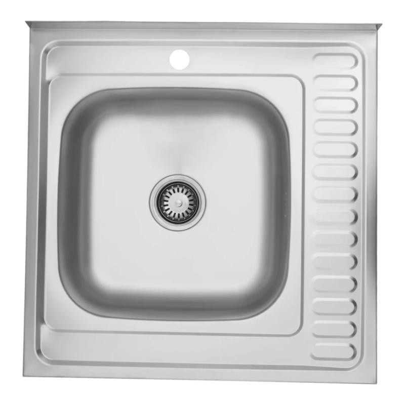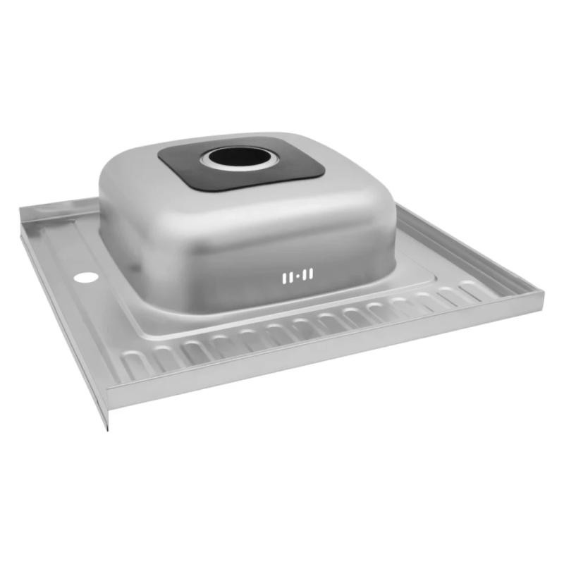 Квадратная мойка с крылом Kroner KRP Satin-6060L CV022823 размером 60х60 см изготовлена из нержавеющей стали толщиной 0,8 мм. Мойка накладная и устанавливается с тумбой или на отверстие в столешнице. На дальнем краю предусмотрен бортик для прилегания к стене. Сатиновое покрытие является одним из самых лучших для использования на кухнях: гладкая поверхность не впитывает загрязнениями легко моется, а матовость делает невидимыми засохшие капли воды. Таким образом мойка всегда выглядит чистой и ухоженной с наименьшими усилиями со стороны хозяйки. На борту мойки предусмотрено одно отверстие для смесителя. Благодаря глубине в 15.5 см и просторным размерам чаши вы легко сможете мыть в ней крупную посуду или набирать воду в высокие кастрюли.