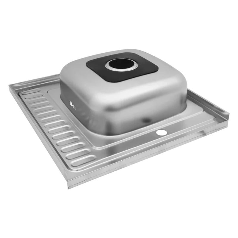 Квадратная мойка с крылом Kroner KRP Satin-6060R CV022824 размером 60х60 см изготовлена из нержавеющей стали толщиной 0,8 мм. Мойка накладная и устанавливается с тумбой или на отверстие в столешнице. На дальнем краю предусмотрен бортик для прилегания к стене. Сатиновое покрытие является одним из самых лучших для использования на кухнях: гладкая поверхность не впитывает загрязнениями легко моется, а матовость делает невидимыми засохшие капли воды. Таким образом мойка всегда выглядит чистой и ухоженной с наименьшими усилиями со стороны хозяйки. На борту мойки предусмотрено одно отверстие для смесителя. Благодаря глубине в 15.5 см и просторным размерам чаши вы легко сможете мыть в ней крупную посуду или набирать воду в высокие кастрюли.