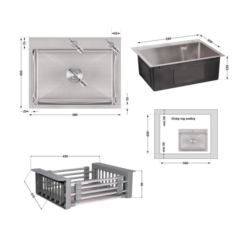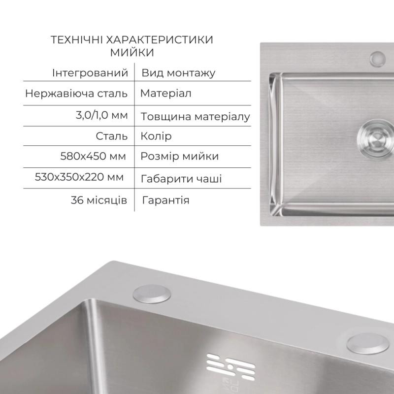 Комплектація: Мойка (LDH5845BRU35384), корзина (LIDZK01G)