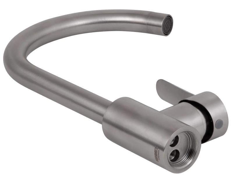Смеситель для кухни Brinex Pure 015F U-образный Nickel – функциональность и долговечность в одном устройстве. Изготовлен из нержавеющей стали с никелевым покрытием, которое придает изделию стильный внешний вид. Высокий излив U-образной формы и надежный керамический механизм делают эксплуатацию максимально комфортной.