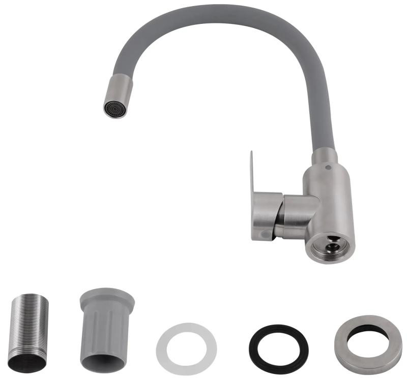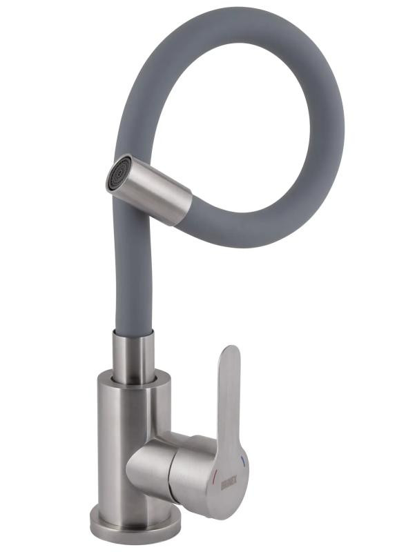 Смеситель для кухни Brinex Pure 015F3 с гибким изливом Nickel/Grey – стильный и практичный выбор. Гибкий серый излив гармонично сочетается с никелевым корпусом. Легкость регулировки напора воды и высокая износостойкость благодаря керамическому картриджу. Комплектация: смеситель, крепления.