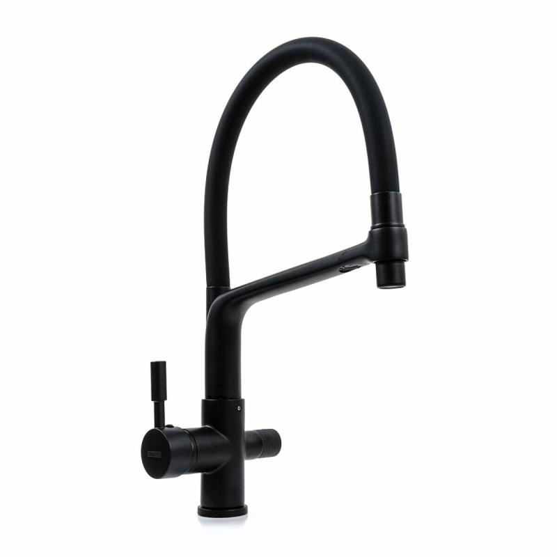 Легкость и комфорт смешиваются с элегантностью в кухонном смесителе с встроенным фильтром и гибким черным гуськом. Благодаря высоте смесителя 430 мм вы легко сможете мыть и наполнять большие сосуды. Длина излива 175 мм добавляет еще больше удобства к вашему кулинарному процессу, позволяя легко достичь даже самых высоких сосудов.