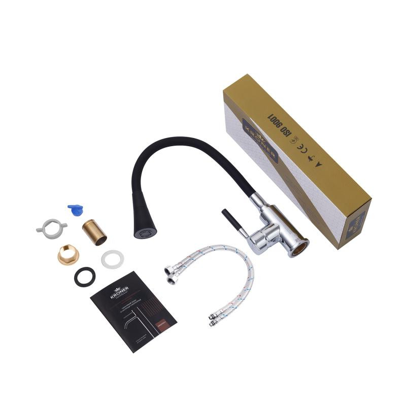 Смеситель для кухни Kroner KRM Kuche – C132GRA – это стильный и функциональный вариант для вашей кухни. Изготовлен из высококачественного силумина с силиконовым изливом, он совмещает прочность и удобство в эксплуатации. Однорычажное управление позволяет легко регулировать температуру и поток воды.