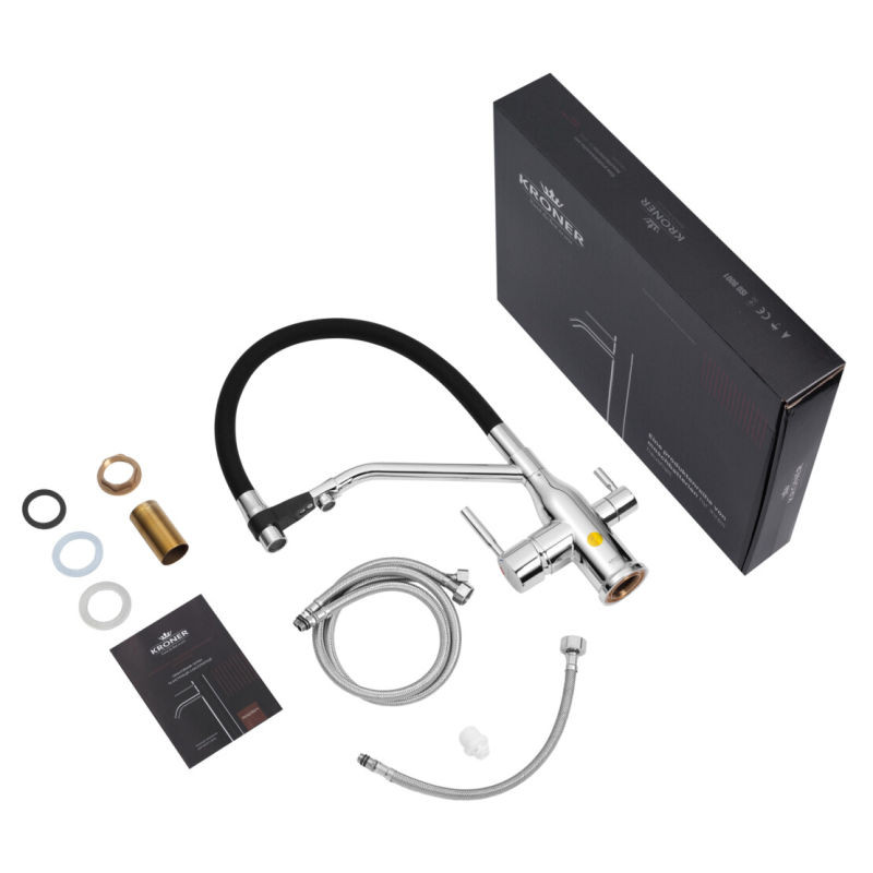 Смеситель Kroner KRP Kuche – C03816BLK (хром) – это удачное сочетание функциональности, комфорта и современного дизайна для вашей кухни.